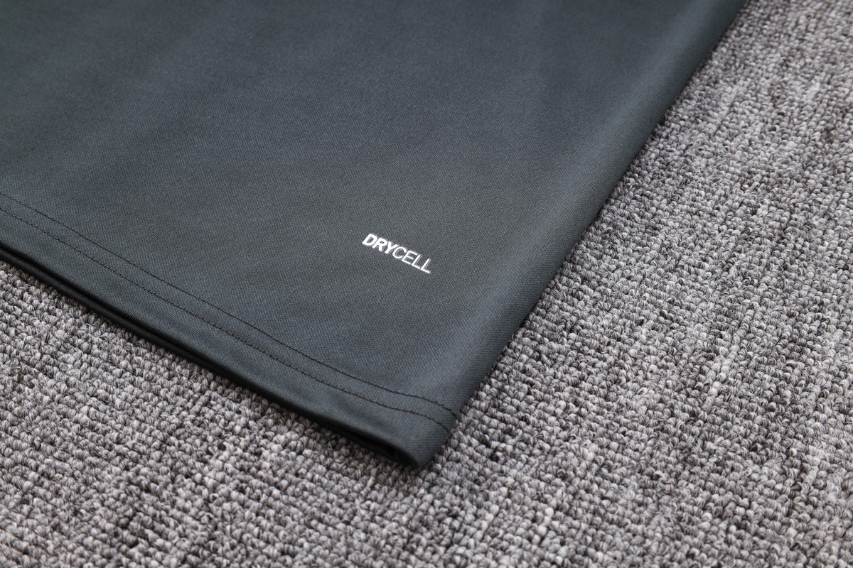 100% polyester and keeps you feeling dry.