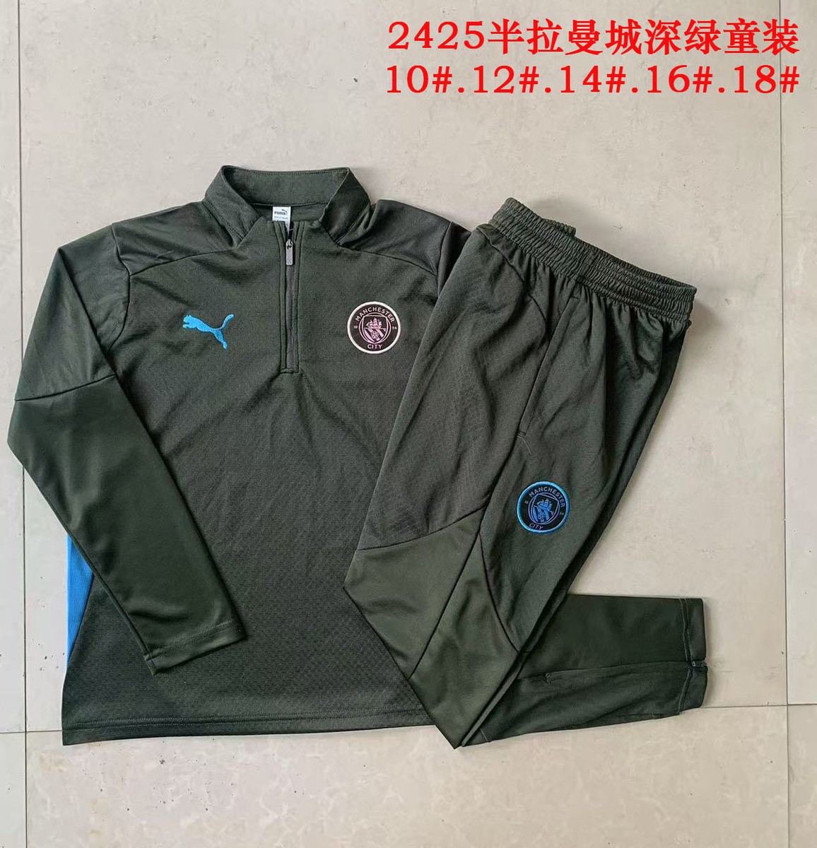 Manchester City 24/25 Half-Zip Kids Dark Green