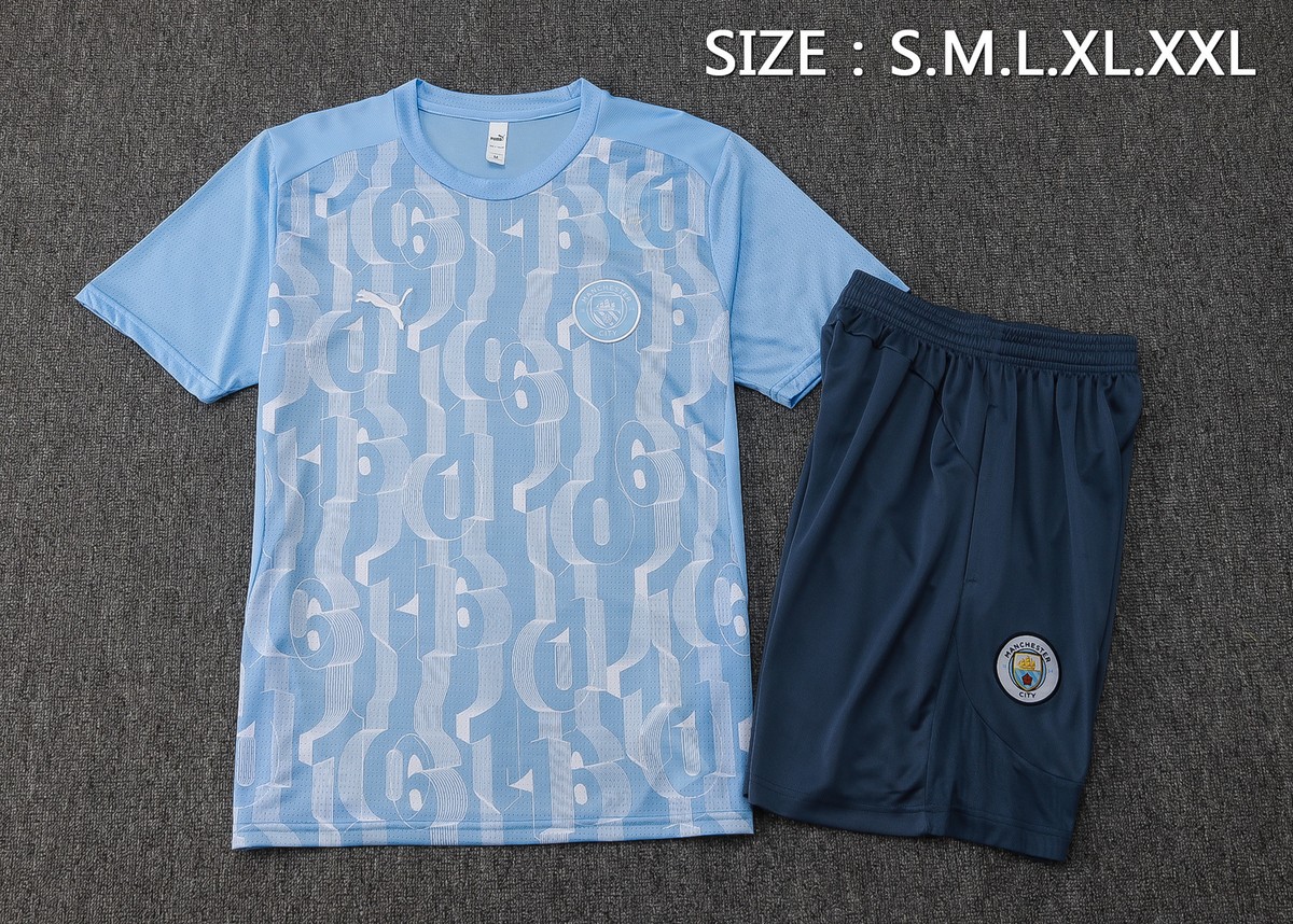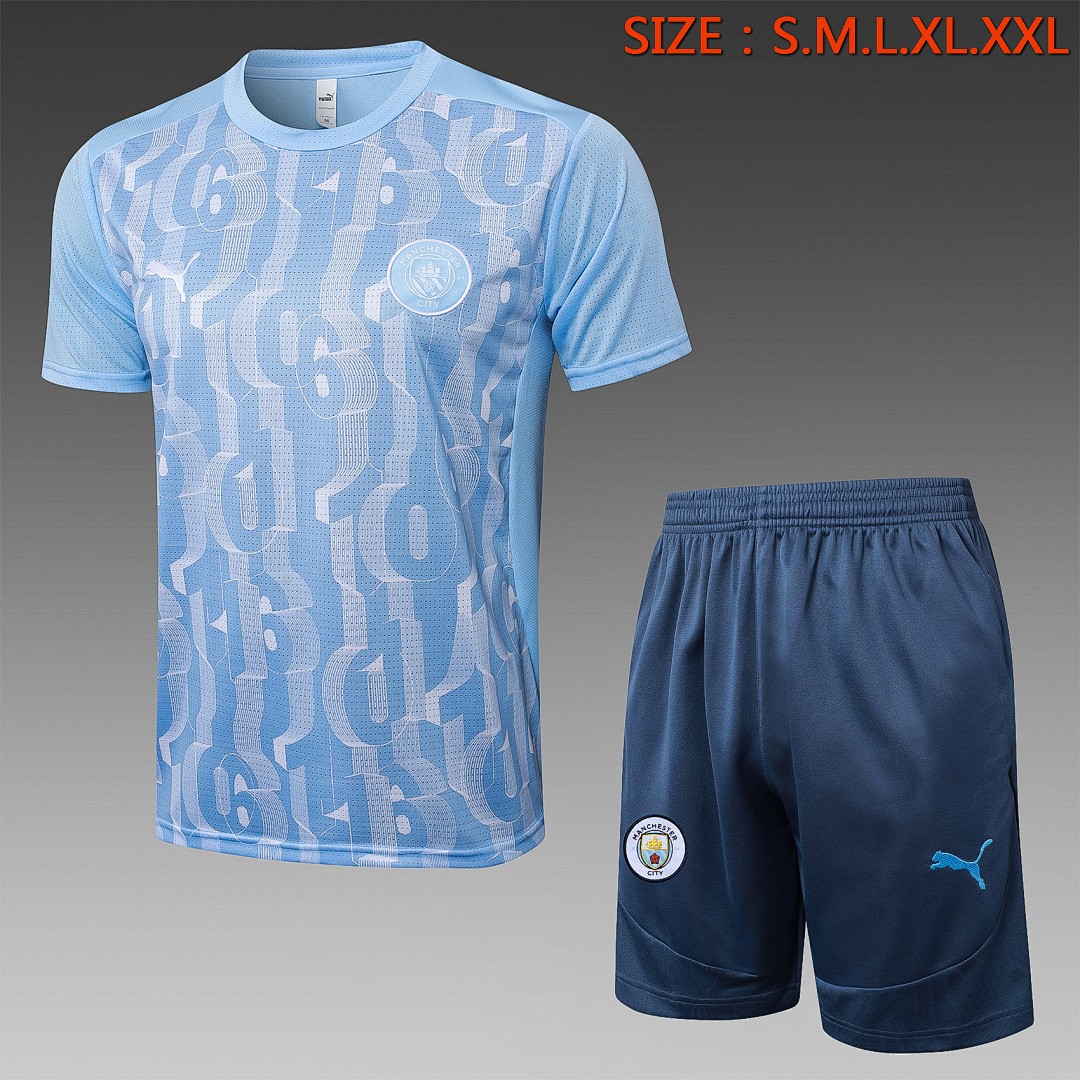 Manchester City 24-25 Light Blue Splatter Short Sleeve Training Shirt