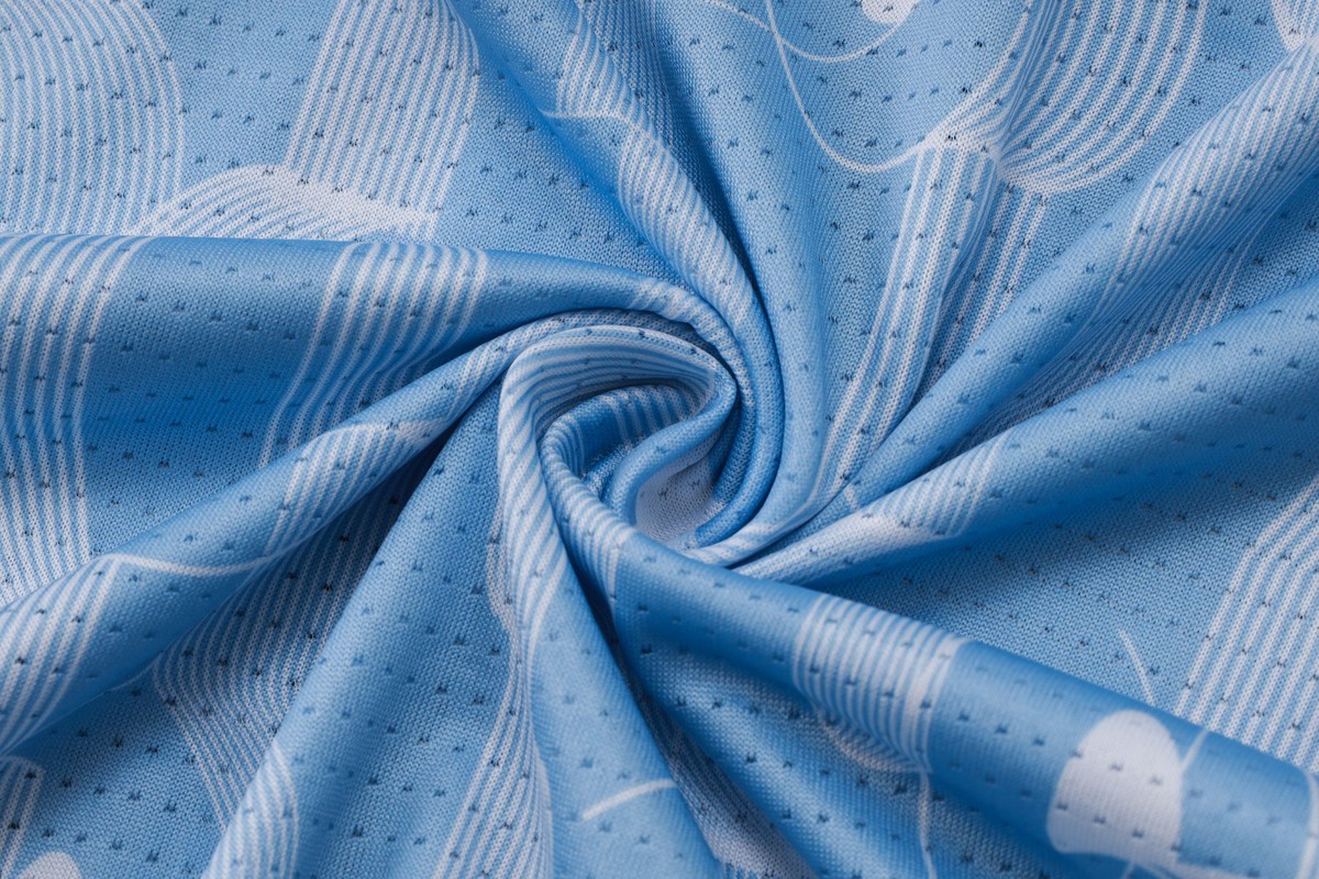 100% polyester and keeps you feeling dry.