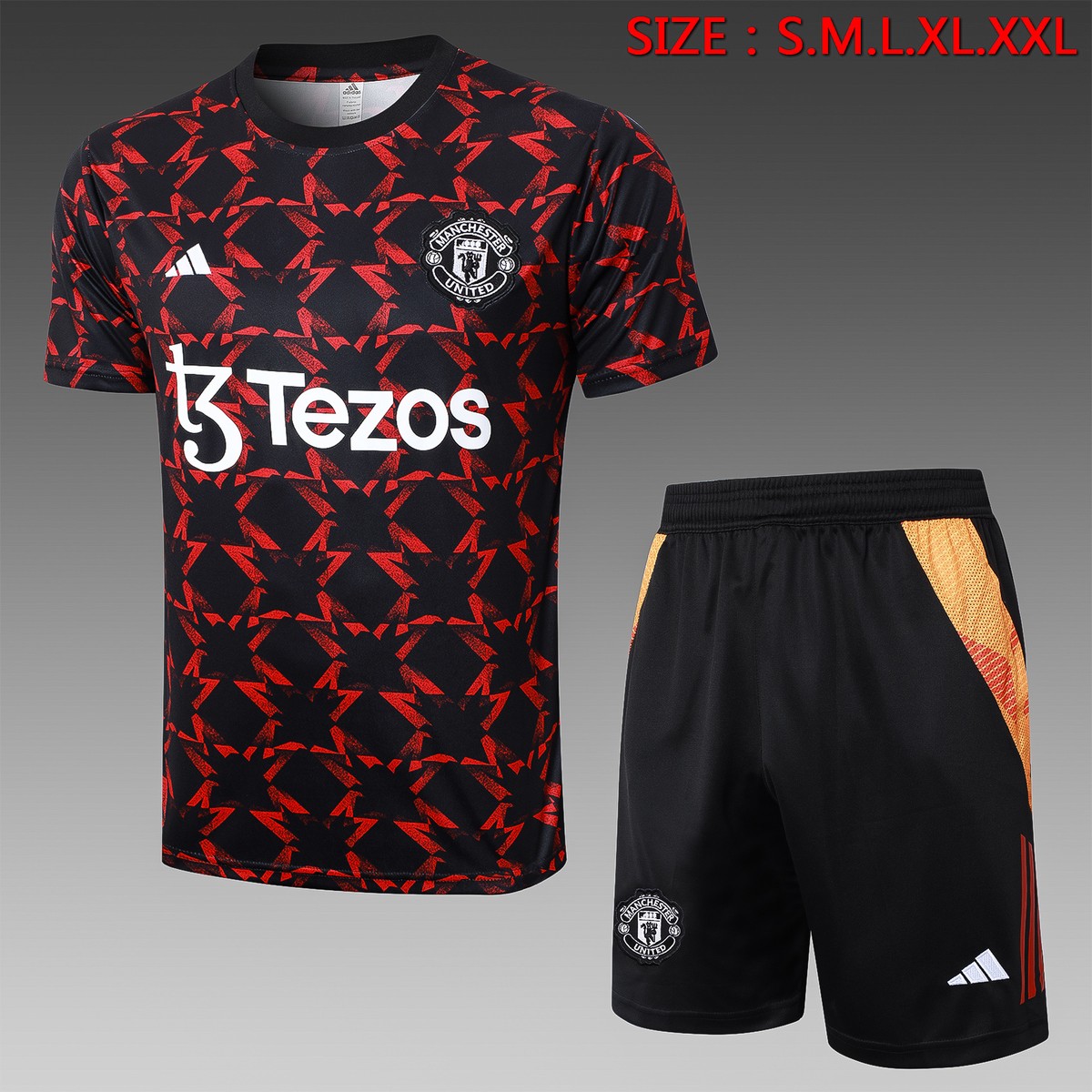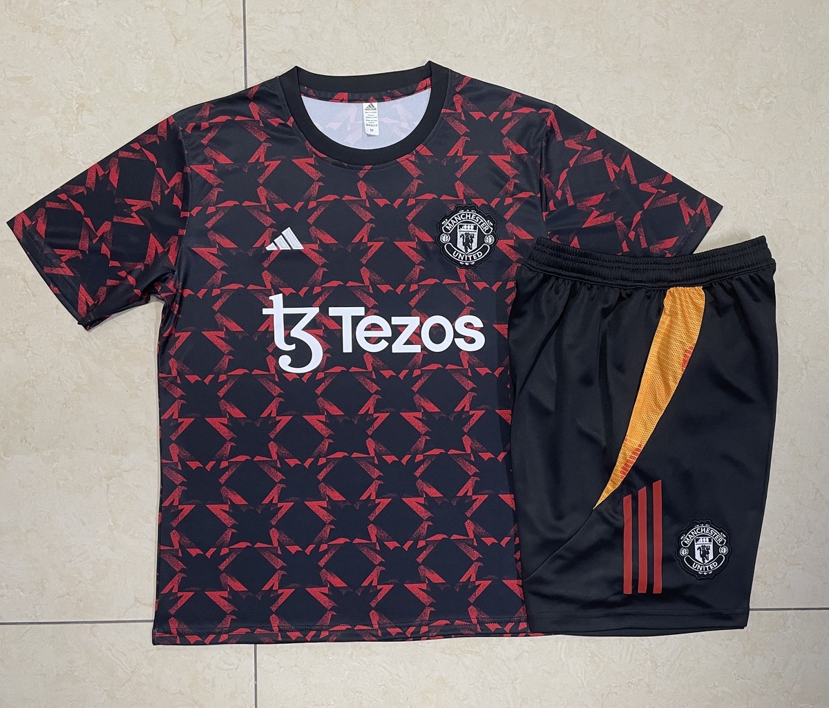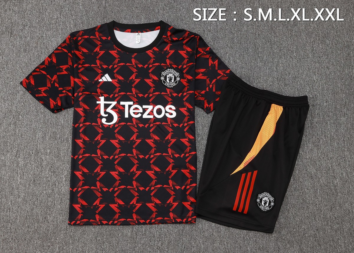Manchester United 24-25 Black Red Splatter Short Sleeve Training Set